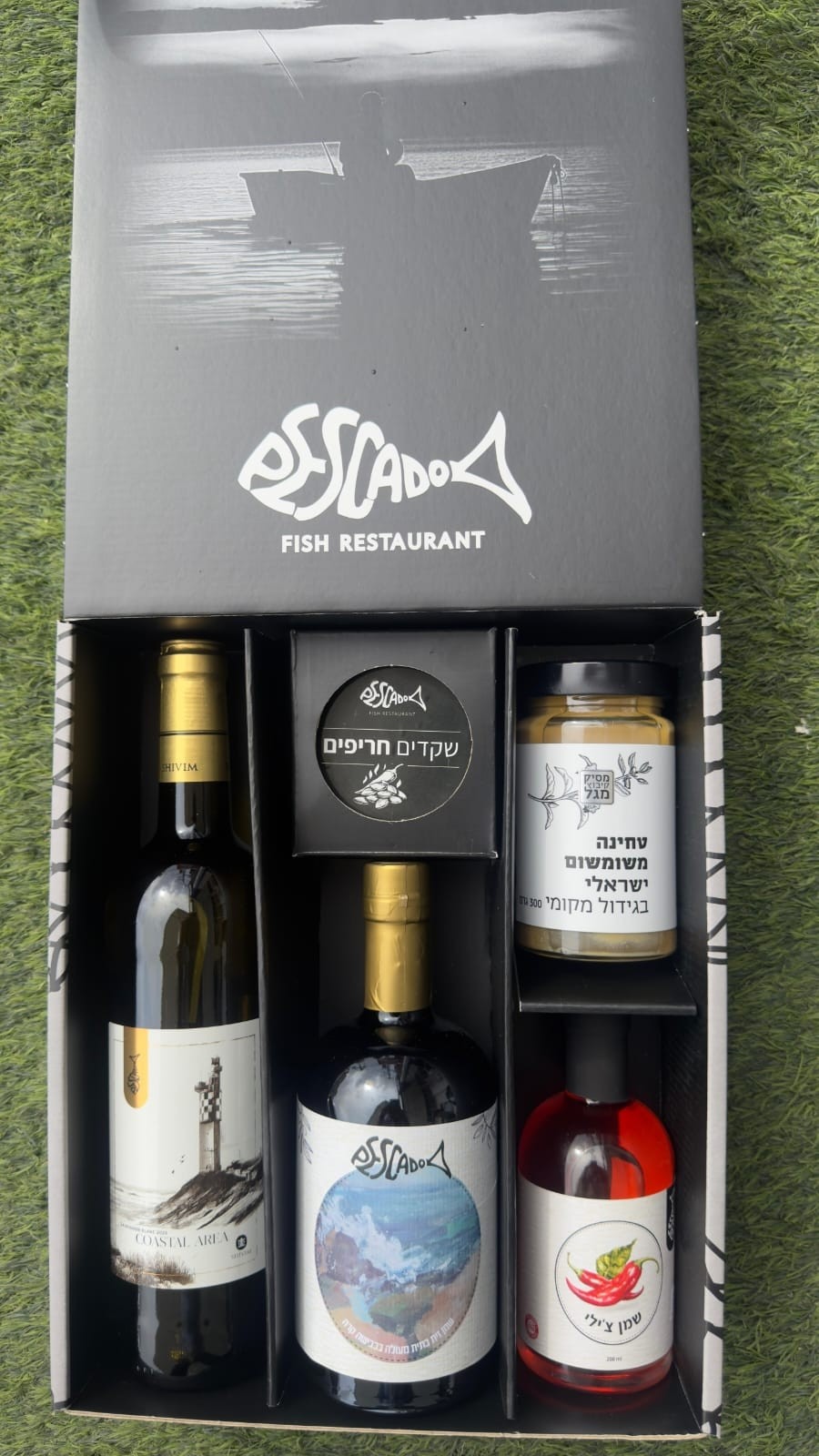 שמן זית פסקדו, יין פסקדו מתחלף, שמן צ'ילי פסקדו, טחינה משומשום ישראלי מסיק מגל ושקדים חריפים מיוחדים של פסקדו